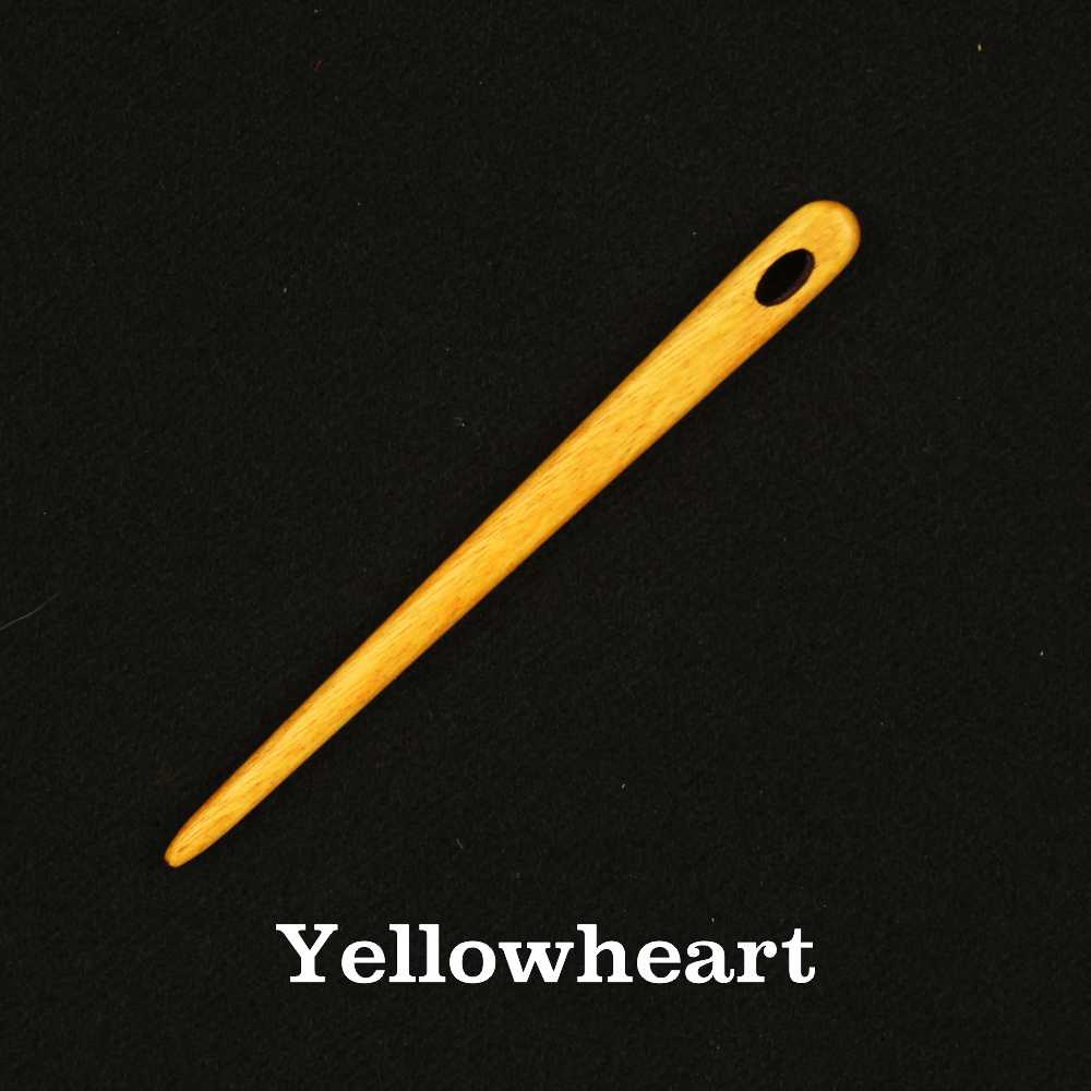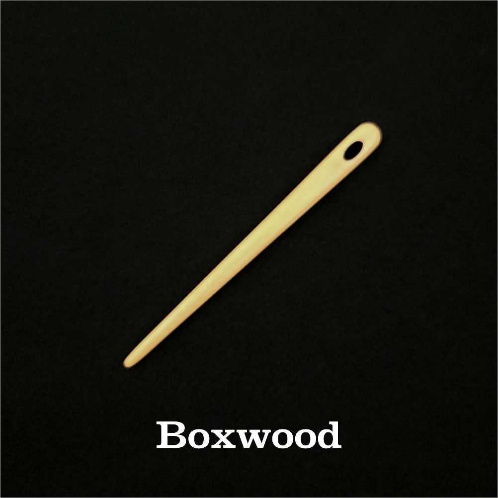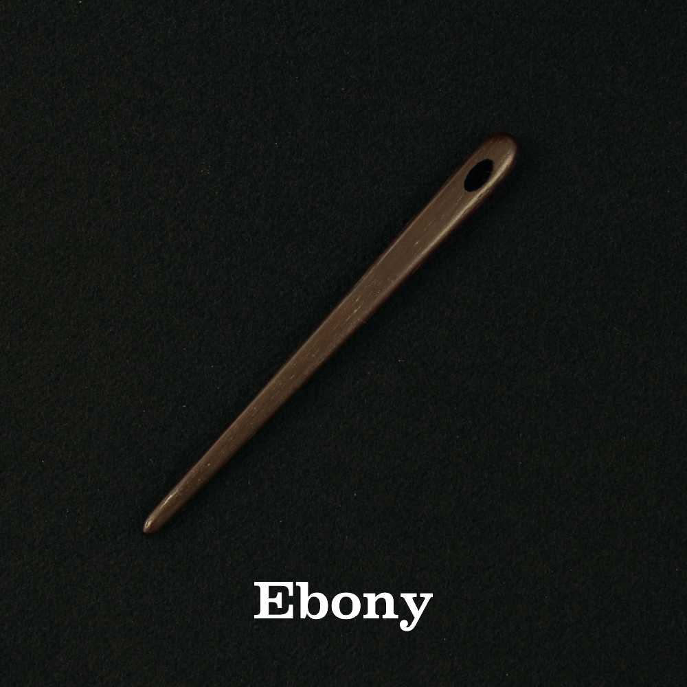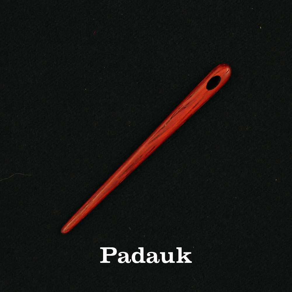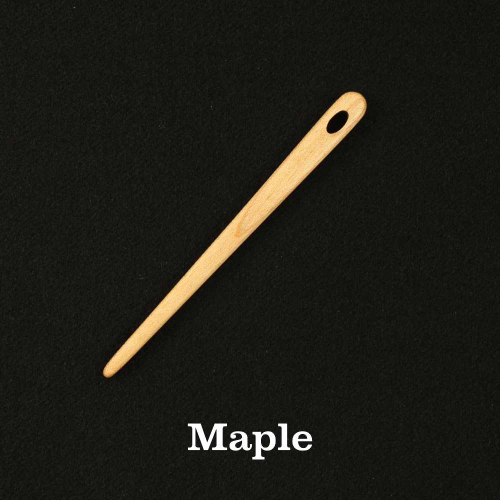 3.5" long straight naal (needle) made from hardwoods. Used for naalbinding, which is also known as single-needle netting. These naals feature an oval hole to accommodate thicker yarns, and are hand sanded extra smooth.