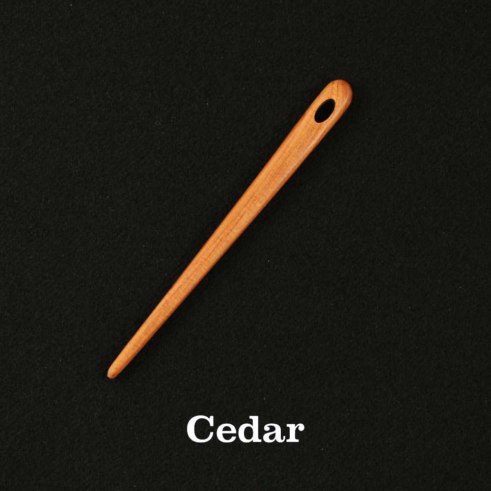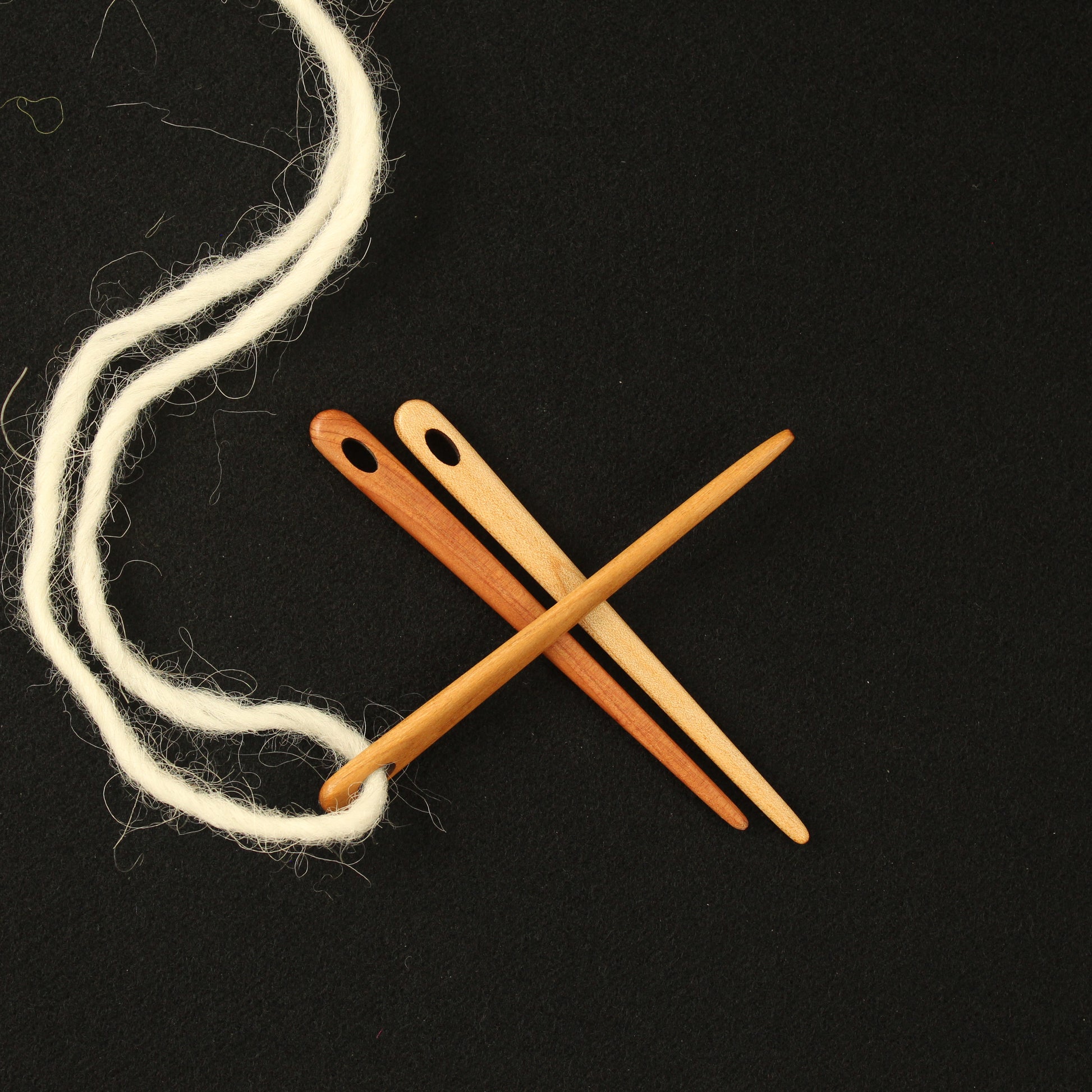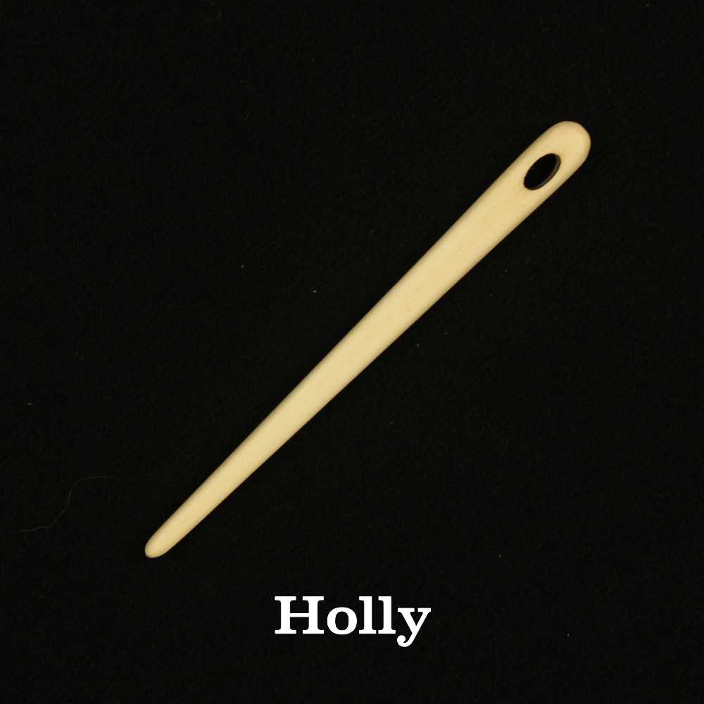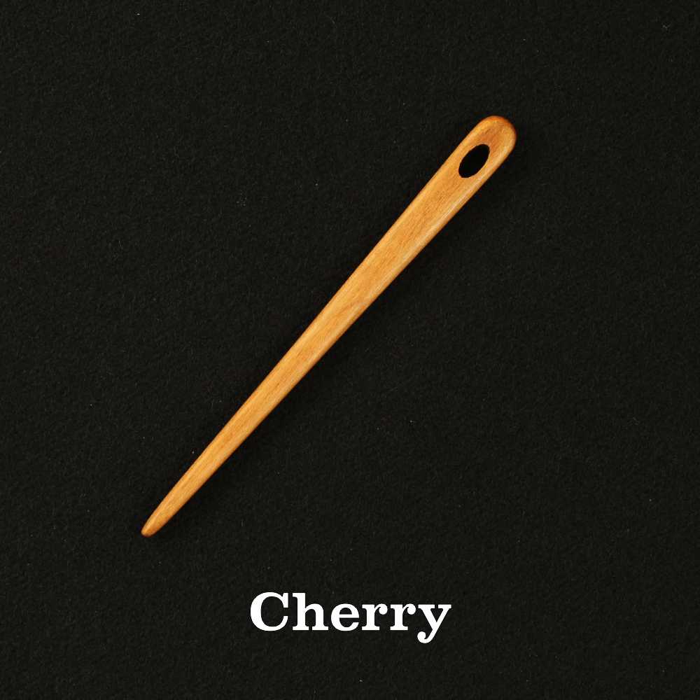 3.5" long straight naal (needle) made from hardwoods. Used for naalbinding, which is also known as single-needle netting. These naals feature an oval hole to accommodate thicker yarns, and are hand sanded extra smooth.