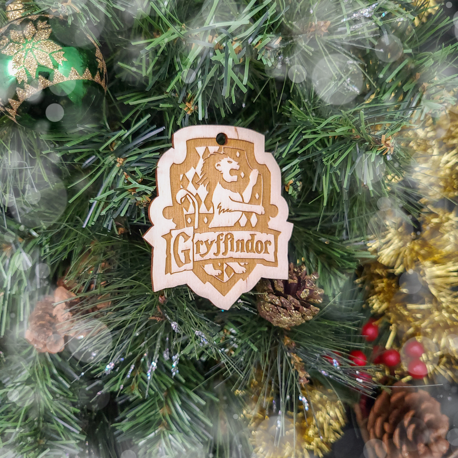 Hogwarts House ornaments - choose from Gryffindor, Slytherin, Hufflepuff and Ravenclaw! These laser engraved birch ornaments make a great gift for the Harry Potter fans in your life. (Even if that's you!)