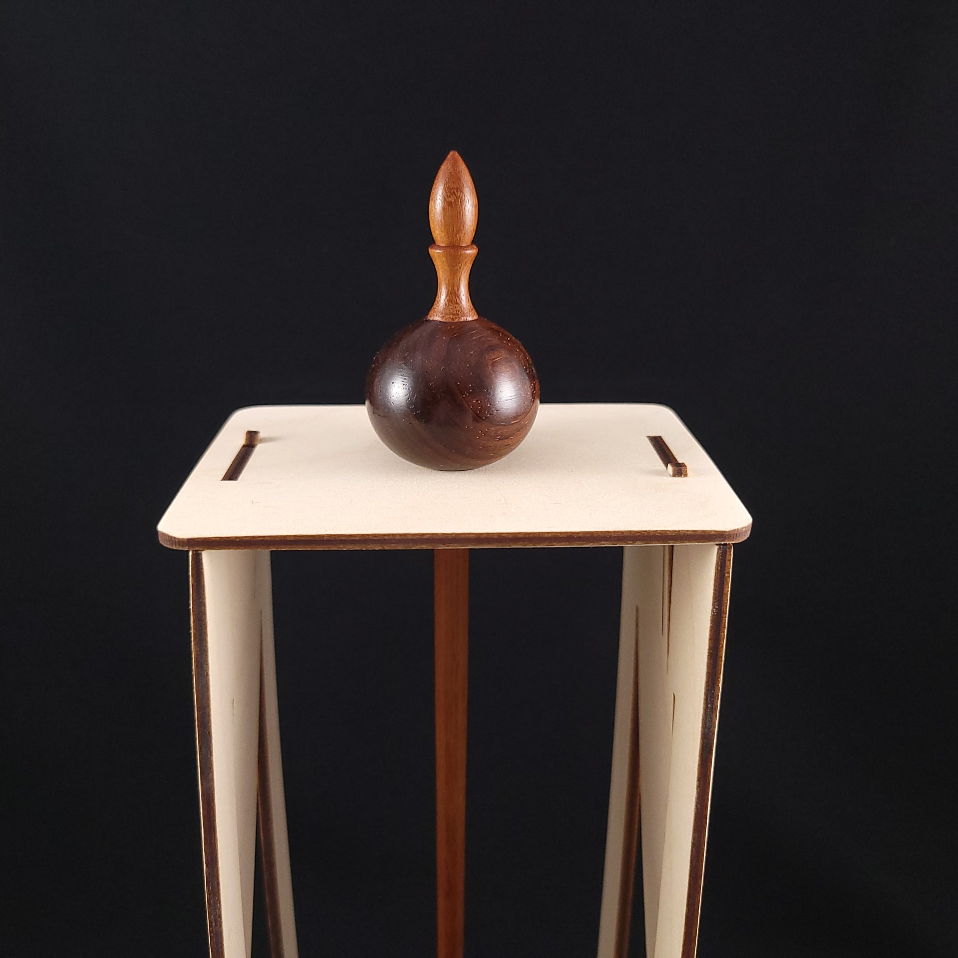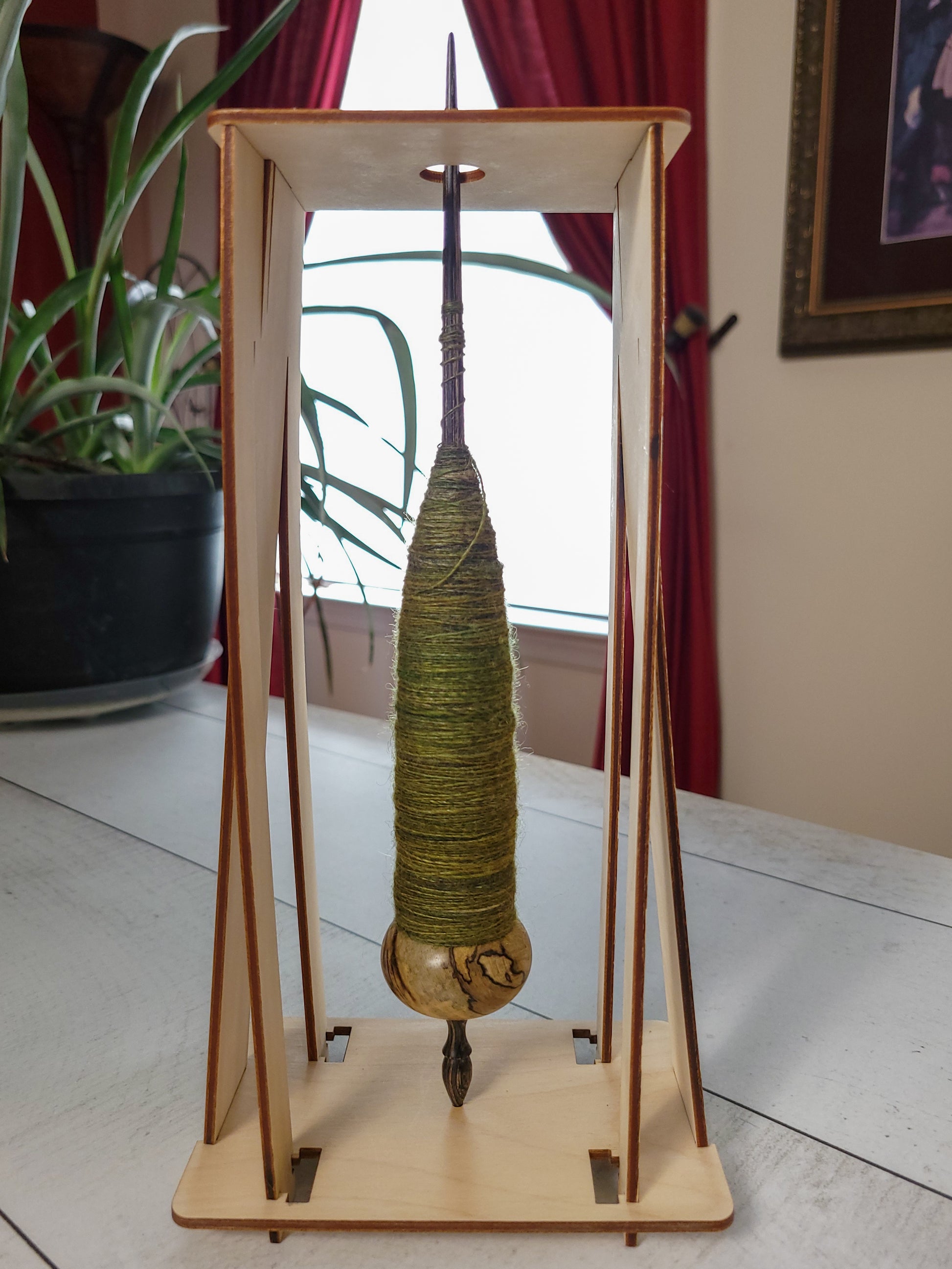 The "Solo" spindle storage stand is the solution for where to put your currently active spindle when it's time to take a well deserved break from spinning.