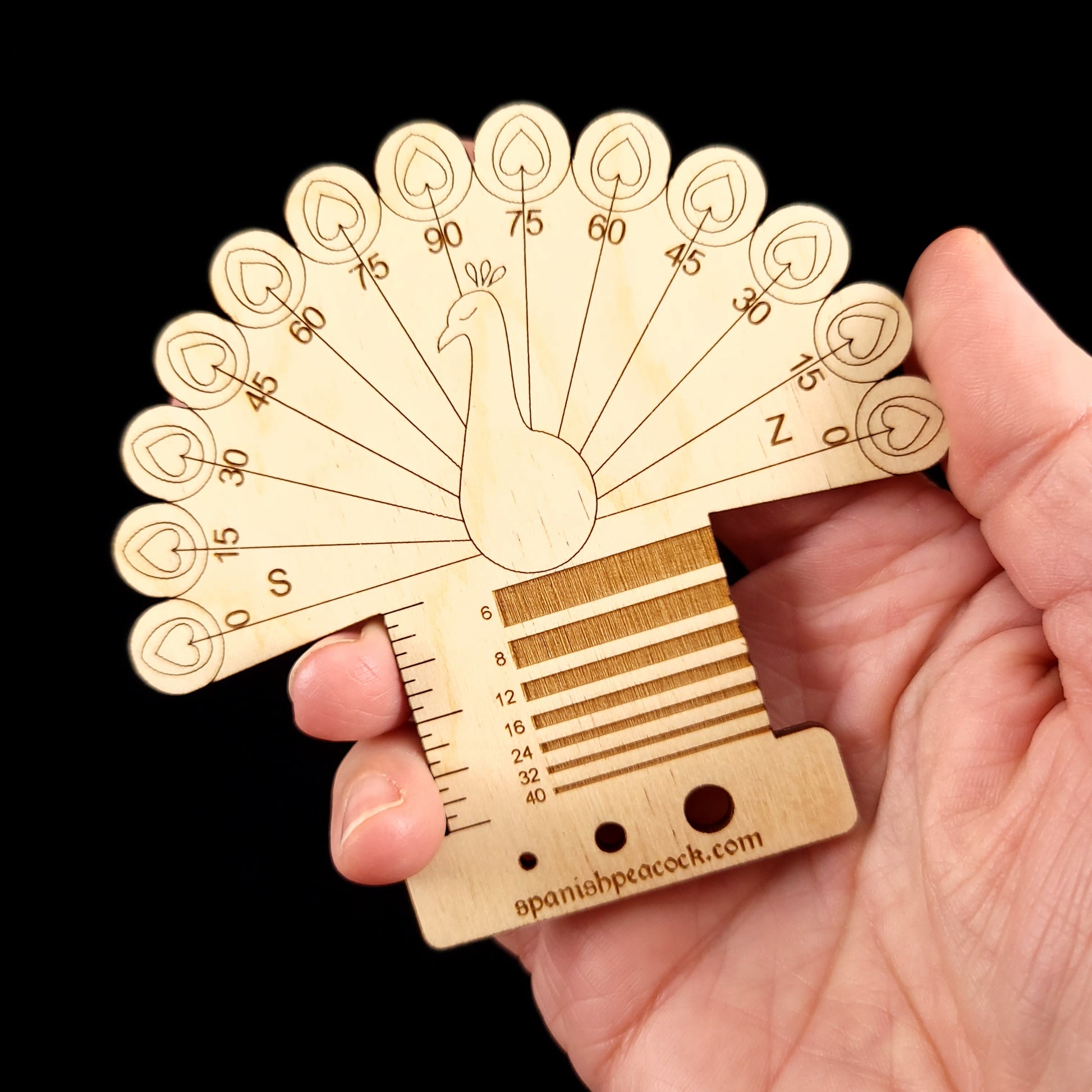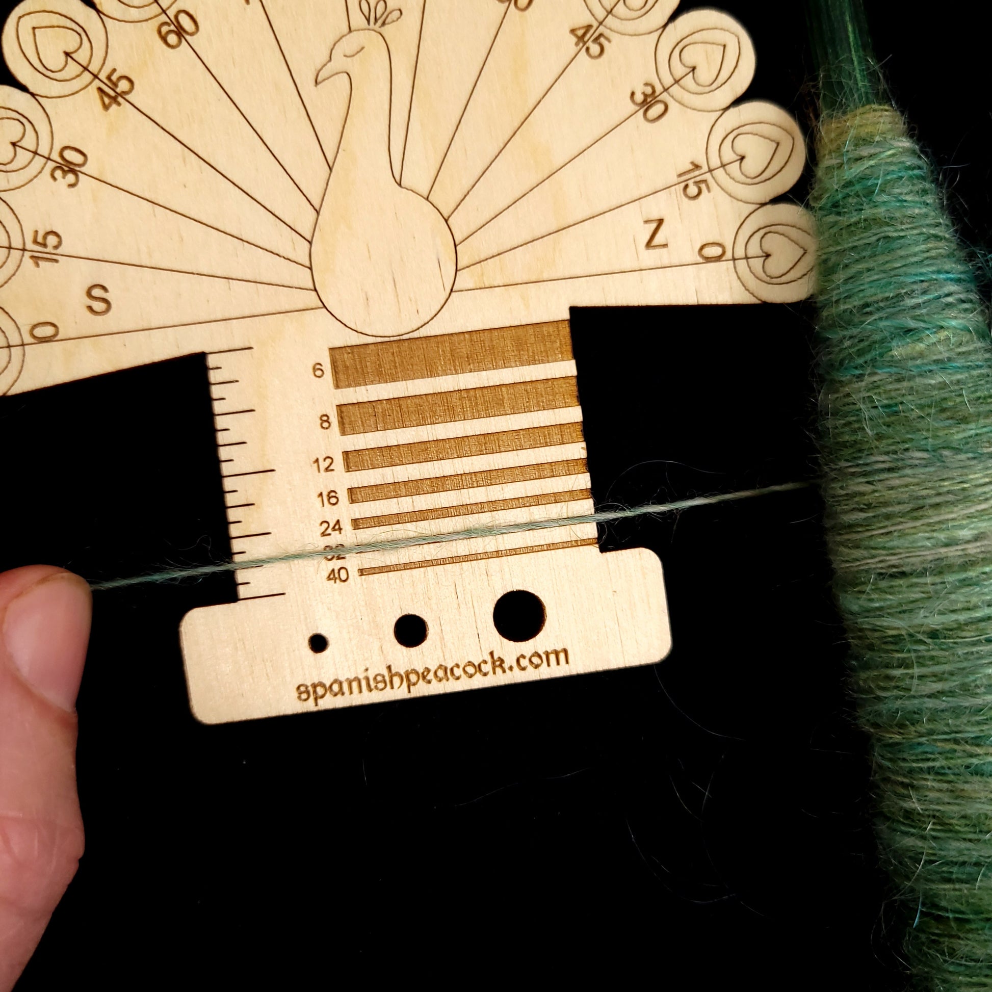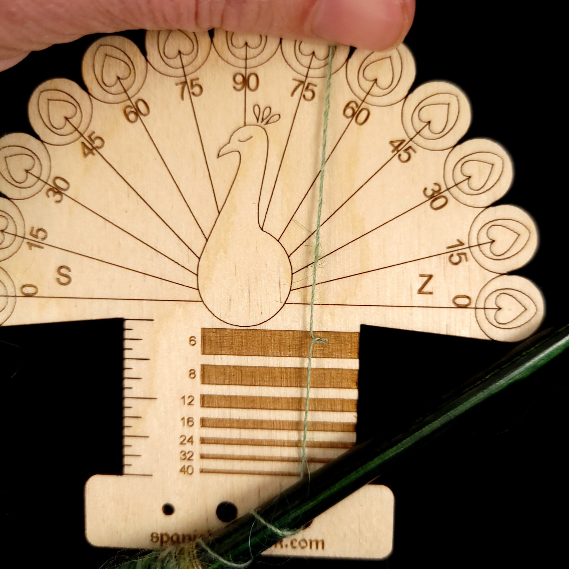 A protractor at the top allows you to assess the amount of twist in your spun yarn.