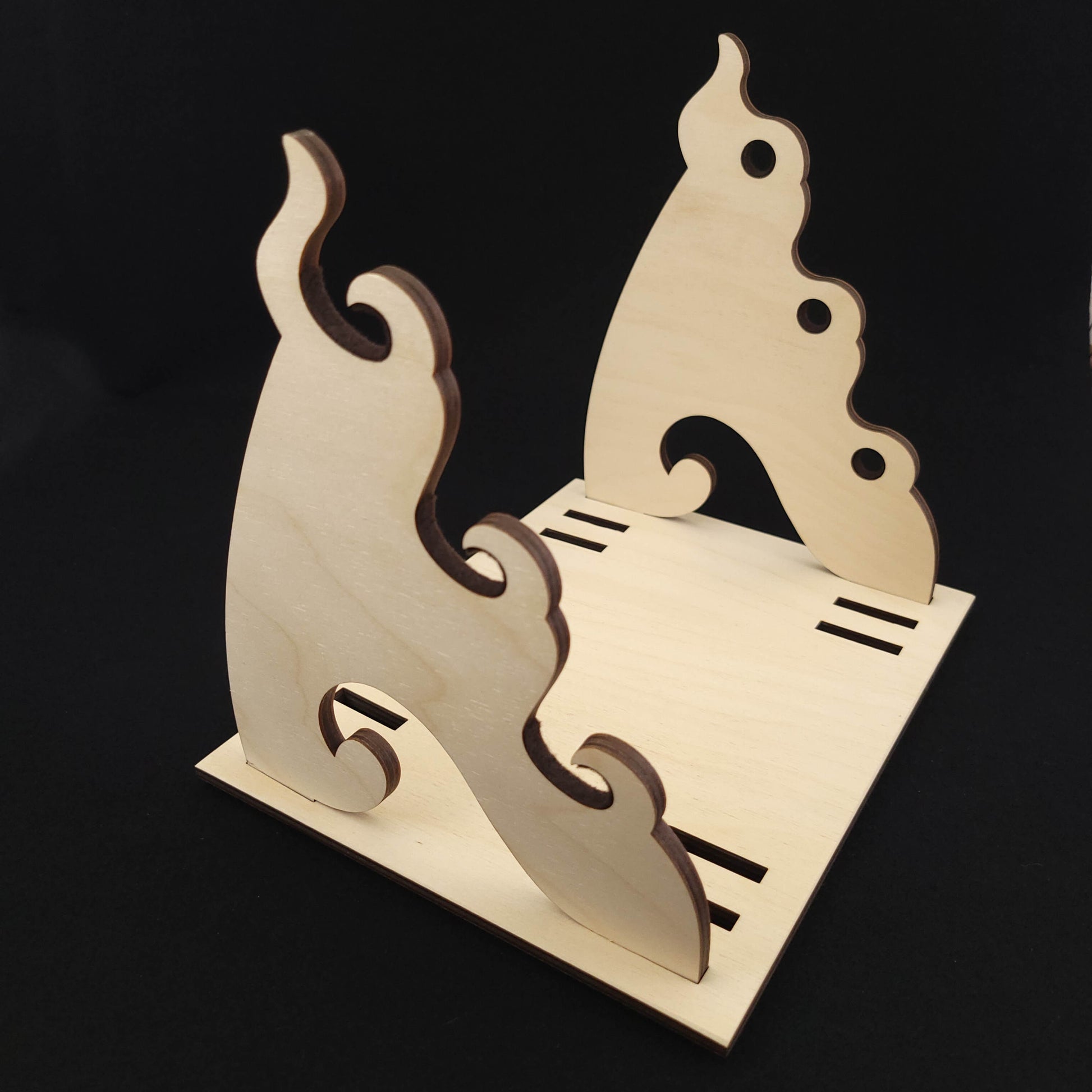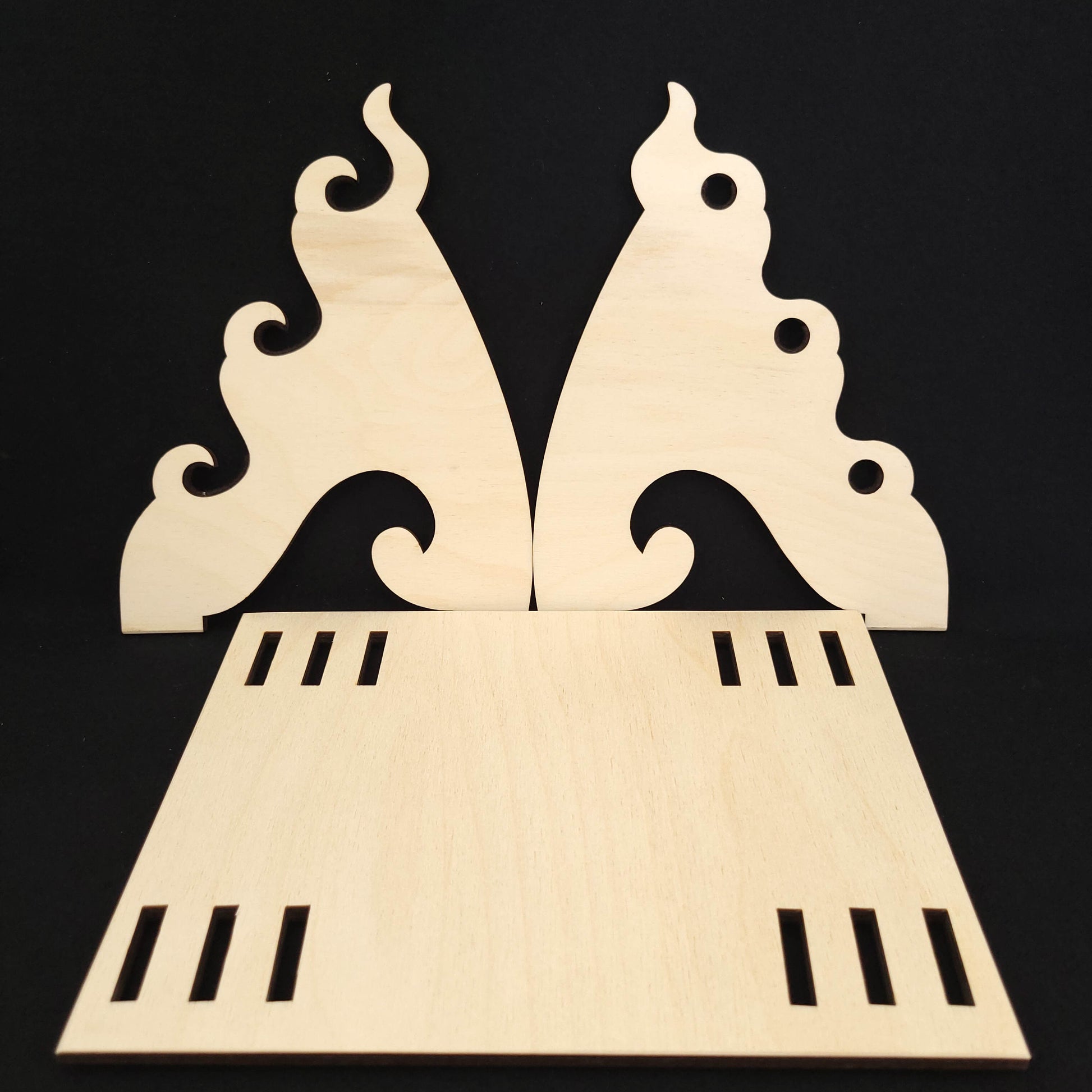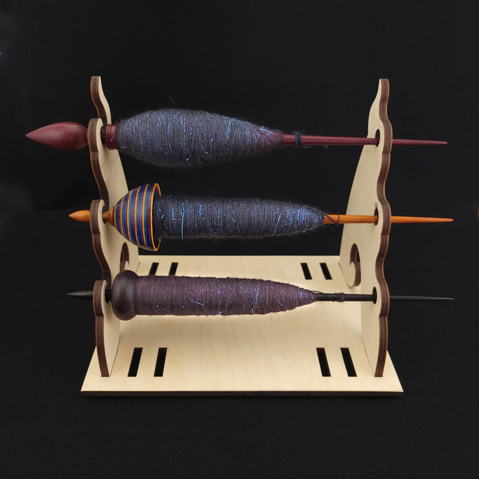 Fully adjustable, tension fit, and packs flat when not in use. Designed especially for use with Spanish Peacock supported spindles but will work with top or bottom whorls and even......other makers' spindles (probably won't burst into flames). Laser cut from .25" Baltic Birch grade A plywood. Hooks and holes have felt applied to avoid damage to your spindles and rubber pads on the bottom to prevent scratches on furniture. Attractive, functional and won't break the bank.